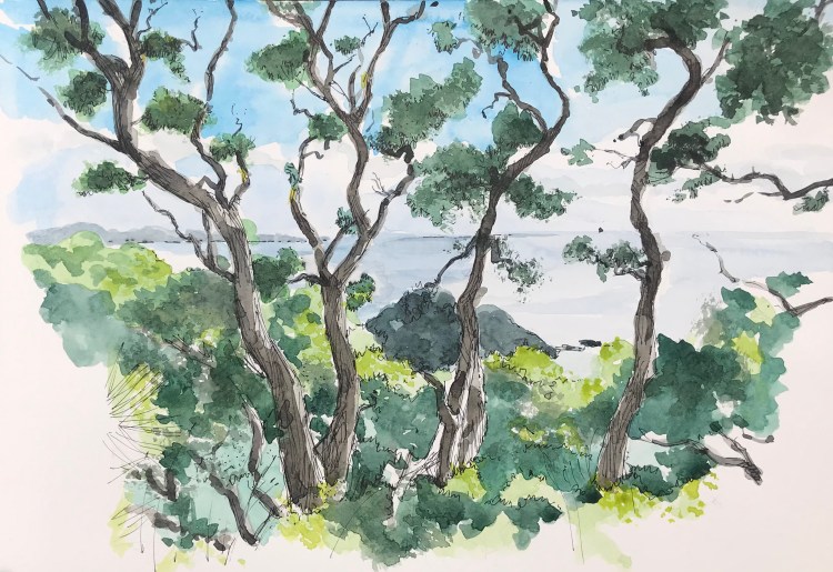Take a look at some new and old sketches added to pages on drawing in the landscape and with family. Including the two below, these go back to a trip to New Zealand in 2019 to visit family – amazing beaches and scenery – feels like an age ago now!